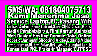 Kami juga menerima jasa pembuatan game, game android,game 2d 3d, jasa pembuatan animasi 2d 3d, jasa pembuatan web, jasa hosting domain, jasa pembuatan aplikasi,jasa pembuatan media pembelajaran,jasa service laptop pc printer, jasa pemasangan jaringan,dll , terima kasih tetap semangat.